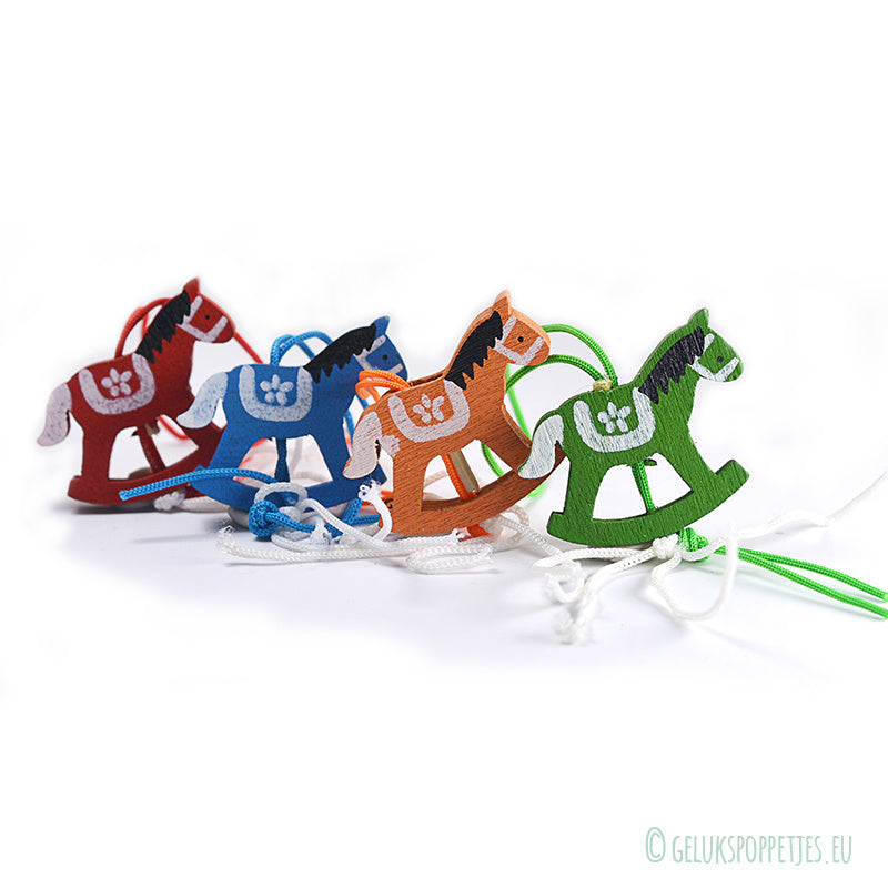 Deze hobbelpaard gelukspoppetjes worden assortie kleur en per stuk geleverd en zijn ongeveer 30x25 mm.