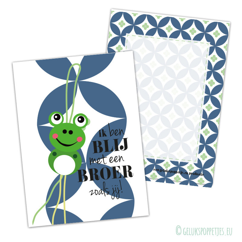 Een leuk kaartje met ons gelukskikkertje: "Ik ben blij met een broer zoals jij", een leuk kaartje voor je broer met zijn verjaardag maar ook leuk om te sturen of geven op "broer en zussendag".