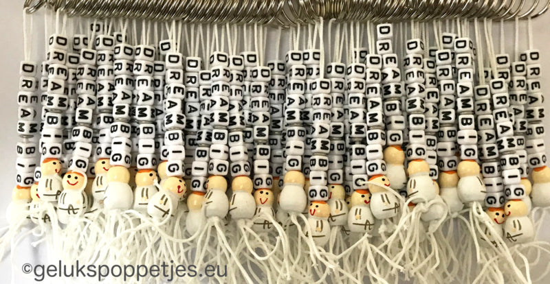 Uiteraard kunt u ook een ander woord of naam doorgeven die we aan deze gelukspoppetjes naamsleutelhanger mogen maken!